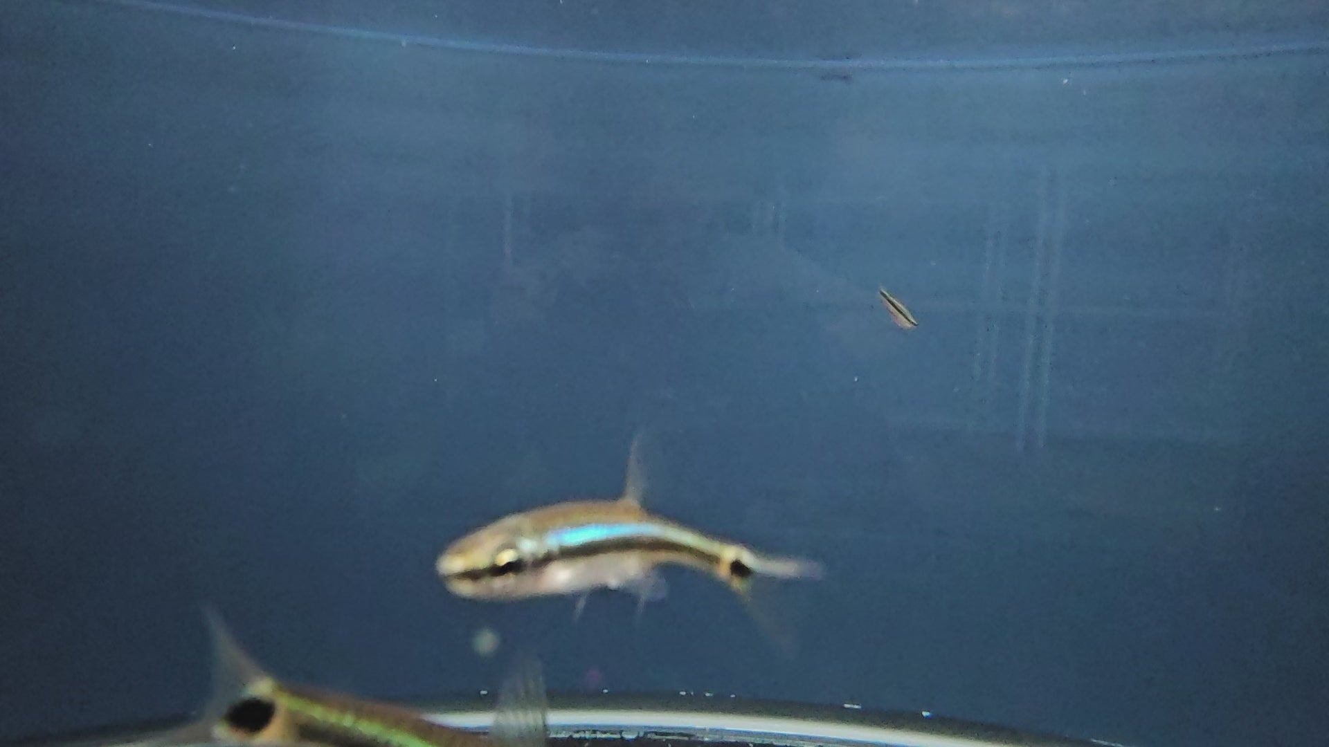 Blue Line Aphyocypris are slender, torpedo shaped minnows with a bright lateral accent that flashes as they turn. Depending on the individual and light angle, the stripe can read as silver, green blue, or gold, with a translucent body and clear fins.